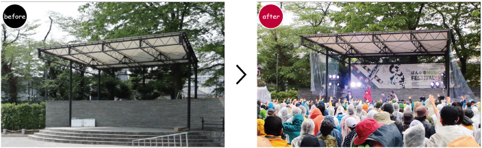 会場の雰囲気を作りつつ、足利の地域性をアピール。